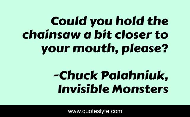 "Chuck Palahniuk, Invisible Monsters Quotes." Quoteslyfe.com, 2025. Fri. 05 Dec. 2025. <https://www.quoteslyfe.com/quote/Could-you-hold-the-chainsaw-a-bit-6979>.