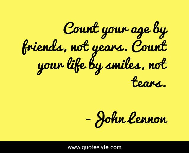 This page presents the quote "Count your age by friends, not years. Count your life by smiles, not tears.". Author of this quote is John Lennon. This quote is about timelessness, happiness, wisdom,.
