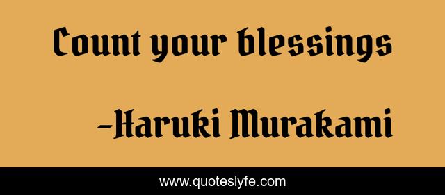 This page presents the quote "Count your blessings". Author of this quote is Haruki Murakami. This quote is about blessing, norwegian-wood,.