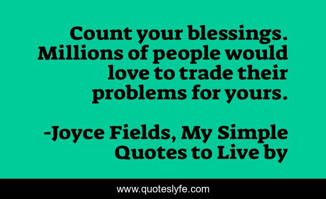 This page presents the quote "Count your blessings. Millions of people would love to trade their problems for yours.". Author of this quote is Joyce Fields, My Simple Quotes to Live by. This quote is about count, blessings, problems,.