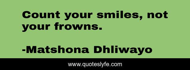 "Matshona Dhliwayo Quotes." Quoteslyfe.com, 2025. Sat. 06 Dec. 2025. <https://www.quoteslyfe.com/quote/Count-your-smiles-not-your-frowns-83385>.