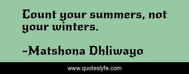 "Matshona Dhliwayo Quotes." Quoteslyfe.com, 2025. Fri. 05 Dec. 2025. <https://www.quoteslyfe.com/quote/Count-your-summers-not-your-winters-198822>.