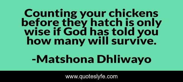 "Matshona Dhliwayo Quotes." Quoteslyfe.com, 2025. Fri. 05 Dec. 2025. <https://www.quoteslyfe.com/quote/Counting-your-chickens-before-they-hatch-is-97935>.