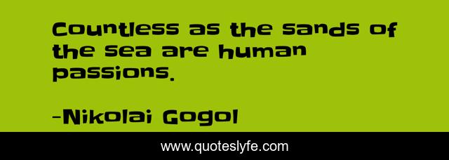 This page presents the quote "Countless as the sands of the sea are human passions.". Author of this quote is Nikolai Gogol. This quote is about human-complexity, passion,.