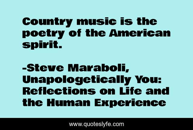 This page presents the quote "Country music is the poetry of the American spirit.". Author of this quote is Steve Maraboli, Unapologetically You: Reflections on Life and the Human Experience. This quote is about country-music, american, poetry, spirit,.