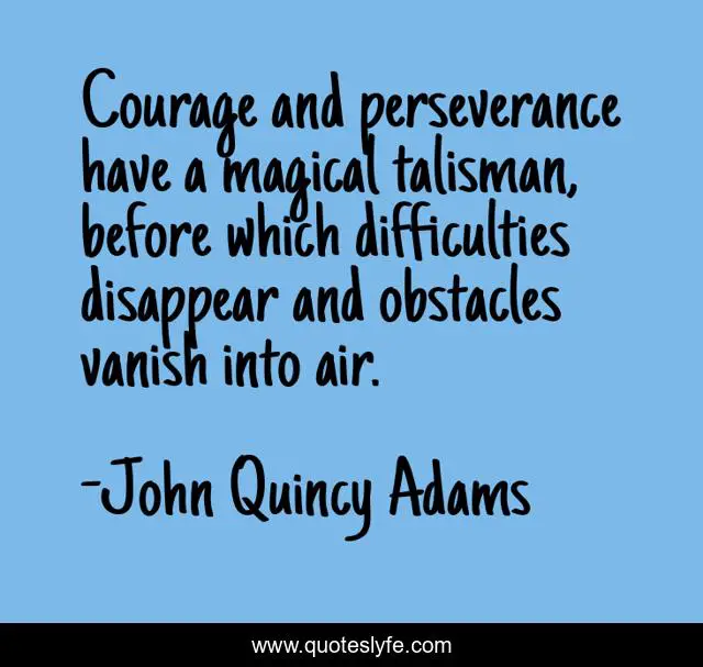 "John Quincy Adams Quotes." Quoteslyfe.com, 2025. Mon. 08 Dec. 2025. <https://www.quoteslyfe.com/quote/Courage-and-perseverance-have-a-magical-talisman-4465>.