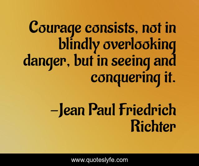 "Jean Paul Friedrich Richter Quotes." Quoteslyfe.com, 2025. Sat. 06 Dec. 2025. <https://www.quoteslyfe.com/quote/Courage-consists-not-in-blindly-overlooking-danger-91306>.