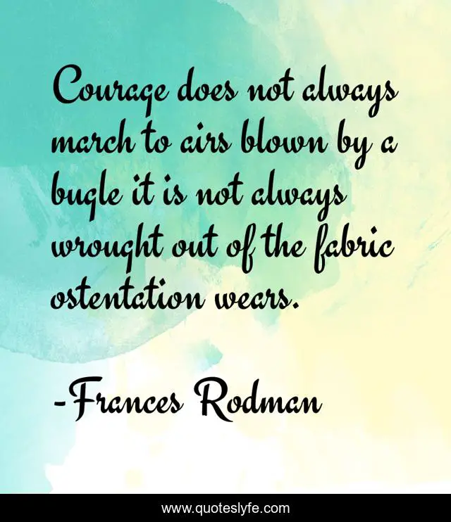 This page presents the quote "Courage does not always march to airs blown by a bugle it is not always wrought out of the fabric ostentation wears.". Author of this quote is Frances Rodman. .