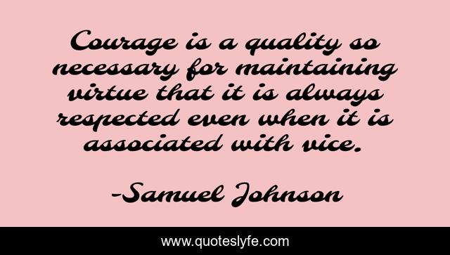 This page presents the quote "Courage is a quality so necessary for maintaining virtue that it is always respected even when it is associated with vice.". Author of this quote is Samuel Johnson. .