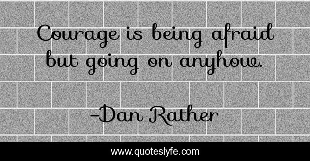 This page presents the quote "Courage is being afraid but going on anyhow.". Author of this quote is Dan Rather. This quote is about being, going, afraid,.