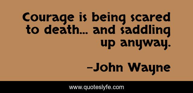 This page presents the quote "Courage is being scared to death... and saddling up anyway.". Author of this quote is John Wayne. This quote is about scared, courage, up,.
