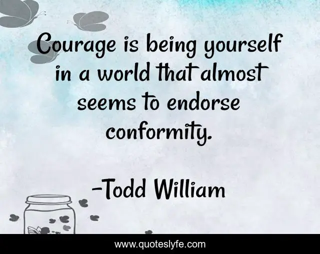 This page presents the quote "Courage is being yourself in a world that almost seems to endorse conformity.". Author of this quote is Todd William. This quote is about individuality, conformity, happiness,.