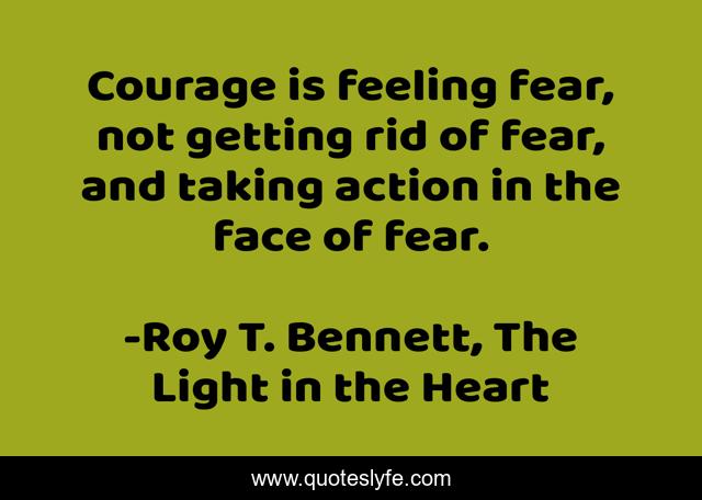 "Roy T. Bennett, The Light in the Heart Quotes." Quoteslyfe.com, 2025. Fri. 05 Dec. 2025. <https://www.quoteslyfe.com/quote/Courage-is-feeling-fear-not-getting-rid-2107>.