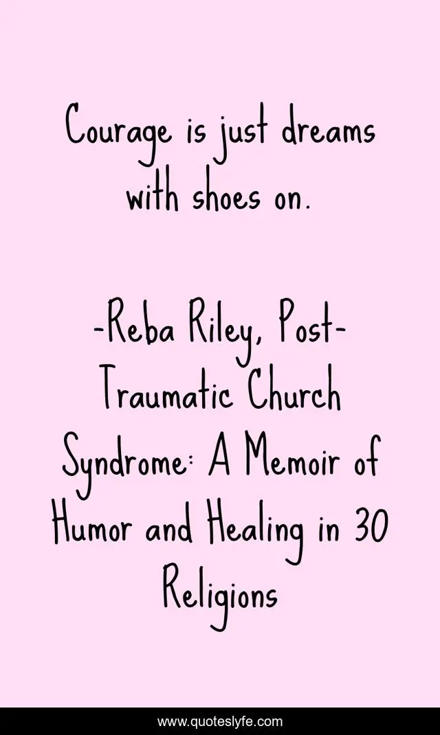 "Reba Riley, Post-Traumatic Church Syndrome: A Memoir of Humor and Healing in 30 Religions Quotes." Quoteslyfe.com, 2025. Fri. 05 Dec. 2025. <https://www.quoteslyfe.com/quote/Courage-is-just-dreams-with-shoes-on-92021>.