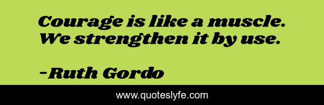 This page presents the quote "Courage is like a muscle. We strengthen it by use.". Author of this quote is Ruth Gordo. This quote is about men, humor, smart-women,.
