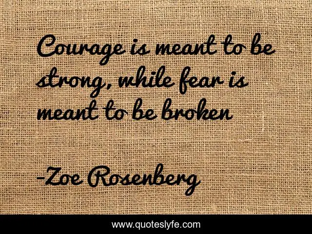 This page presents the quote "Courage is meant to be strong, while fear is meant to be broken". Author of this quote is Zoe Rosenberg. This quote is about enthusiasm, fear, courage, strength, inspirational,.
