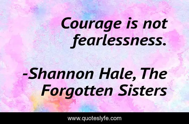 "Shannon Hale, The Forgotten Sisters Quotes." Quoteslyfe.com, 2025. Fri. 05 Dec. 2025. <https://www.quoteslyfe.com/quote/Courage-is-not-fearlessness-91965>.