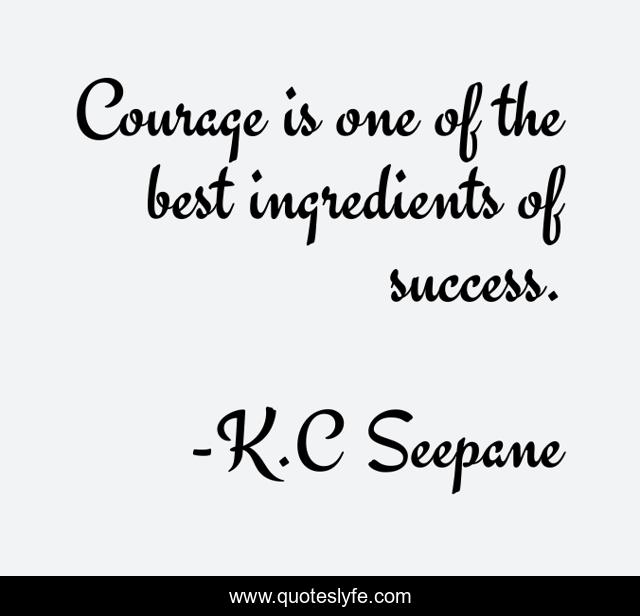 This page presents the quote "Courage is one of the best ingredients of success.". Author of this quote is K.C Seepane. This quote is about life, courage, success, inspiration,.