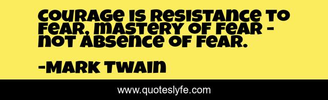 This page presents the quote "Courage is resistance to fear, mastery of fear - not absence of fear.". Author of this quote is Mark Twain. .