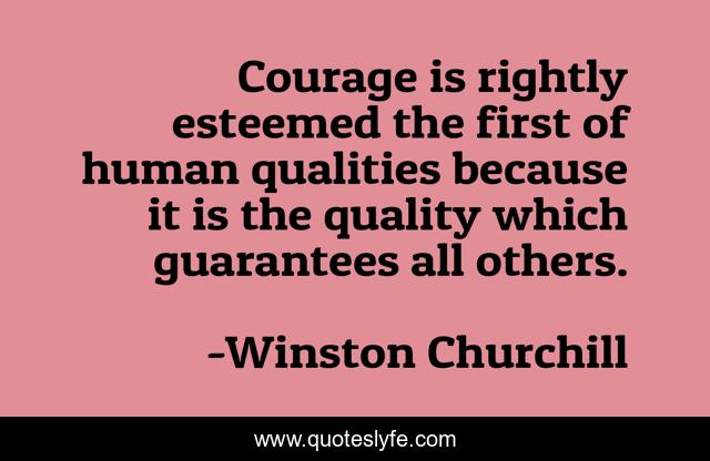 This page presents the quote "Courage is rightly esteemed the first of human qualities because it is the quality which guarantees all others.". Author of this quote is Winston Churchill. This quote is about courage, bravery,.
