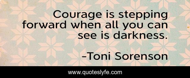This page presents the quote "Courage is stepping forward when all you can see is darkness.". Author of this quote is Toni Sorenson. This quote is about life, courage,.