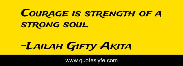 This page presents the quote "Courage is strength of a strong soul.". Author of this quote is Lailah Gifty Akita. This quote is about confidence, strength, fearless, motivational, courage, determination, optimistic, positive,.
