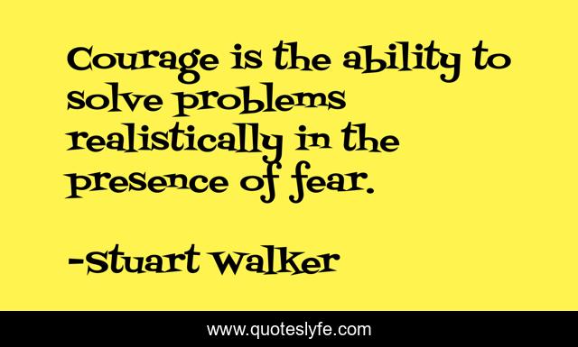 This page presents the quote "Courage is the ability to solve problems realistically in the presence of fear.". Author of this quote is Stuart Walker. .