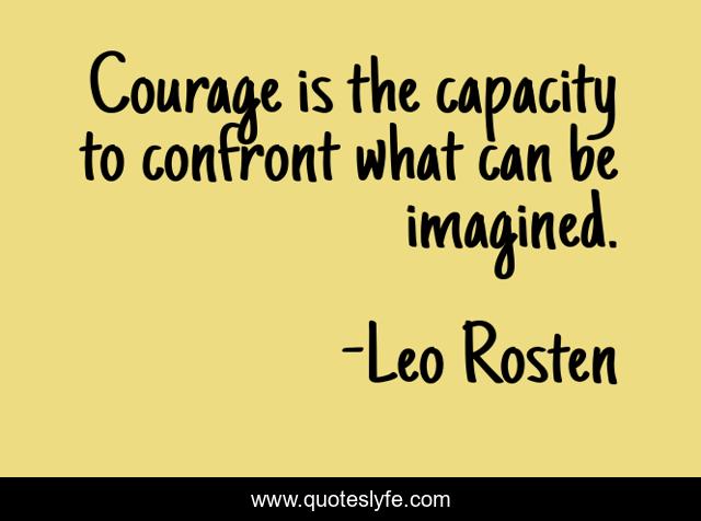 This page presents the quote "Courage is the capacity to confront what can be imagined.". Author of this quote is Leo Rosten. This quote is about confront, capacity, imagined,.