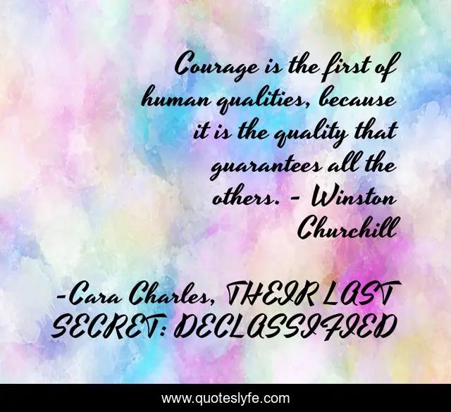 This page presents the quote "Courage is the first of human qualities, because it is the quality that guarantees all the others. - Winston Churchill". Author of this quote is Cara Charles, THEIR LAST SECRET: DECLASSIFIED. .