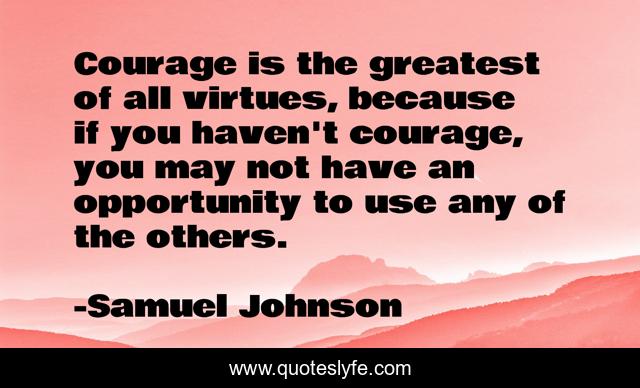 This page presents the quote "Courage is the greatest of all virtues, because if you haven't courage, you may not have an opportunity to use any of the others.". Author of this quote is Samuel Johnson. This quote is about opportunity, greatest,.