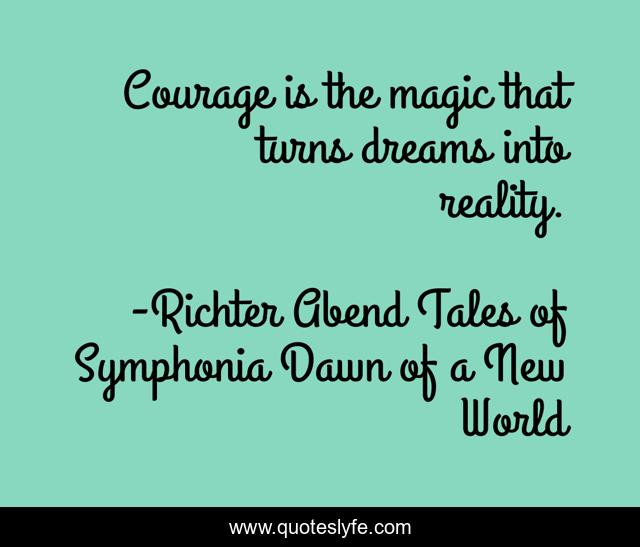 "Richter Abend Tales of Symphonia Dawn of a New World Quotes." Quoteslyfe.com, 2025. Sun. 07 Dec. 2025. <https://www.quoteslyfe.com/quote/Courage-is-the-magic-that-turns-dreams-92162>.