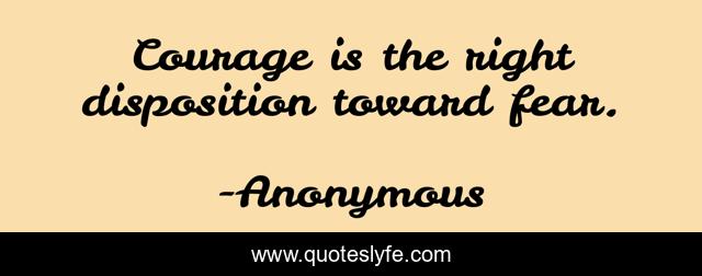 This page presents the quote "Courage is the right disposition toward fear.". Author of this quote is Anonymous. .