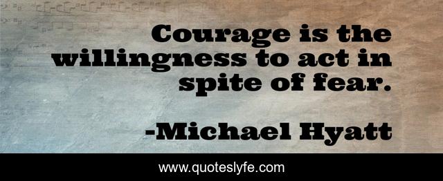 This page presents the quote "Courage is the willingness to act in spite of fear.". Author of this quote is Michael Hyatt. This quote is about fear, courage,.