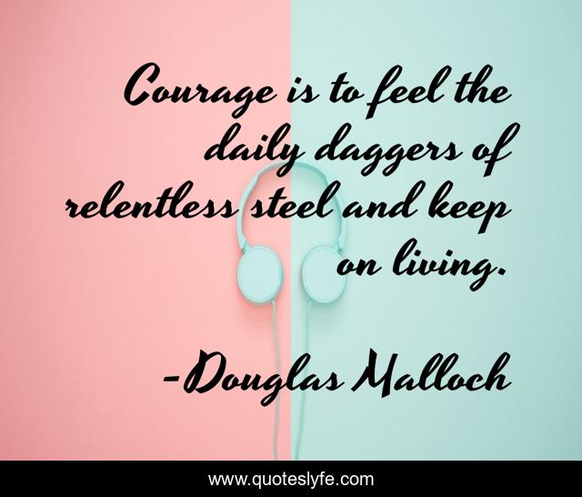 This page presents the quote "Courage is to feel the daily daggers of relentless steel and keep on living.". Author of this quote is Douglas Malloch. .