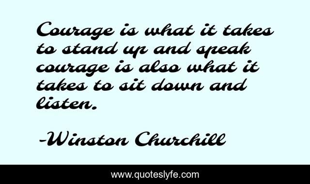 This page presents the quote "Courage is what it takes to stand up and speak courage is also what it takes to sit down and listen.". Author of this quote is Winston Churchill. This quote is about speak, stand, stand up,.