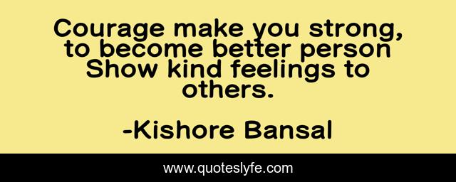 This page presents the quote "Courage make you strong, to become better person Show kind feelings to others.". Author of this quote is Kishore Bansal. This quote is about person, kind, courage, strong, feelings,.