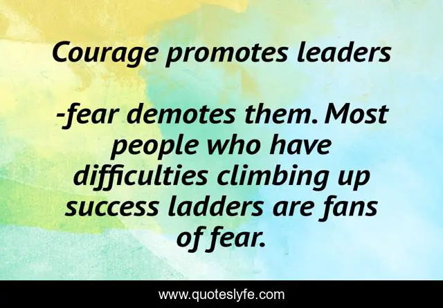 "fear demotes them. Most people who have difficulties climbing up success ladders are fans of fear. Quotes." Quoteslyfe.com, 2025. Sat. 06 Dec. 2025. <https://www.quoteslyfe.com/quote/Courage-promotes-leaders-65056>.