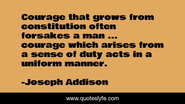 This page presents the quote "Courage that grows from constitution often forsakes a man ... courage which arises from a sense of duty acts in a uniform manner.". Author of this quote is Joseph Addison. .