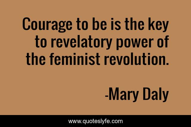 This page presents the quote "Courage to be is the key to revelatory power of the feminist revolution.". Author of this quote is Mary Daly. .