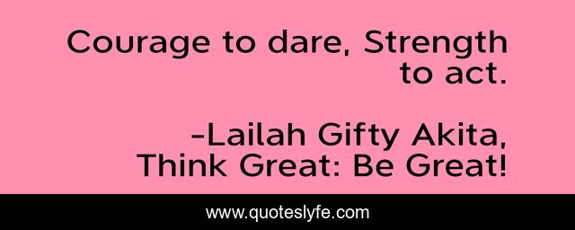 "Lailah Gifty Akita, Think Great: Be Great! Quotes." Quoteslyfe.com, 2025. Mon. 08 Dec. 2025. <https://www.quoteslyfe.com/quote/Courage-to-dare-Strength-to-act-104526>.