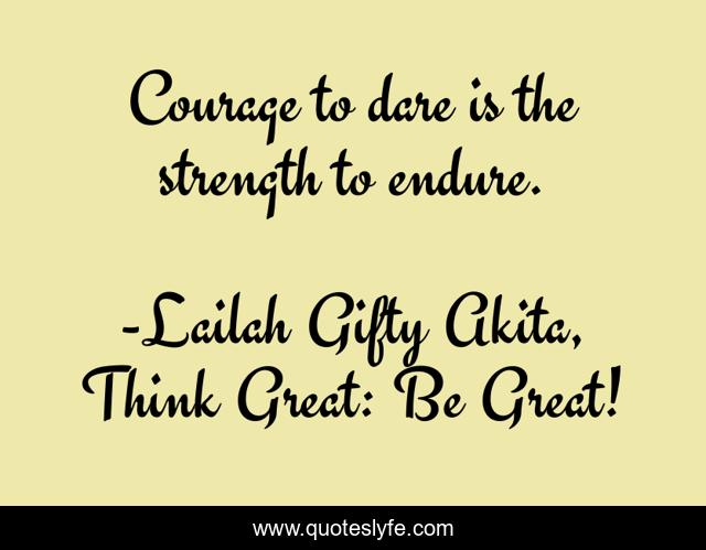 "Lailah Gifty Akita, Think Great: Be Great! Quotes." Quoteslyfe.com, 2025. Sun. 07 Dec. 2025. <https://www.quoteslyfe.com/quote/Courage-to-dare-is-the-strength-to-91783>.