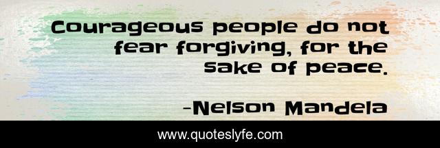 This page presents the quote "Courageous people do not fear forgiving, for the sake of peace.". Author of this quote is Nelson Mandela. This quote is about apologies, ethics, forgiveness, personal-ethics, social-ethics,.
