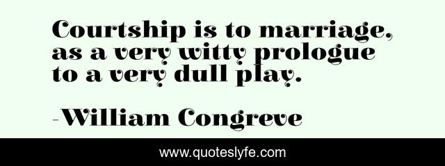 This page presents the quote "Courtship is to marriage, as a very witty prologue to a very dull play.". Author of this quote is William Congreve. This quote is about witty, play, dating,.