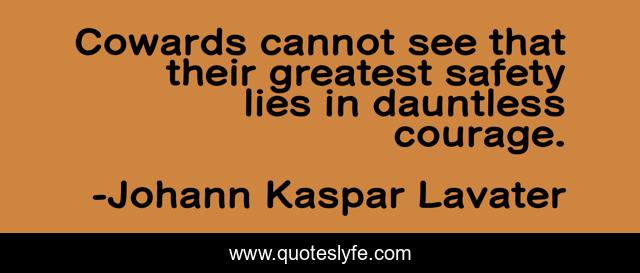 This page presents the quote "Cowards cannot see that their greatest safety lies in dauntless courage.". Author of this quote is Johann Kaspar Lavater. .