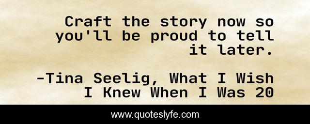 This page presents the quote "Craft the story now so you'll be proud to tell it later.". Author of this quote is Tina Seelig, What I Wish I Knew When I Was 20. This quote is about life, future,.