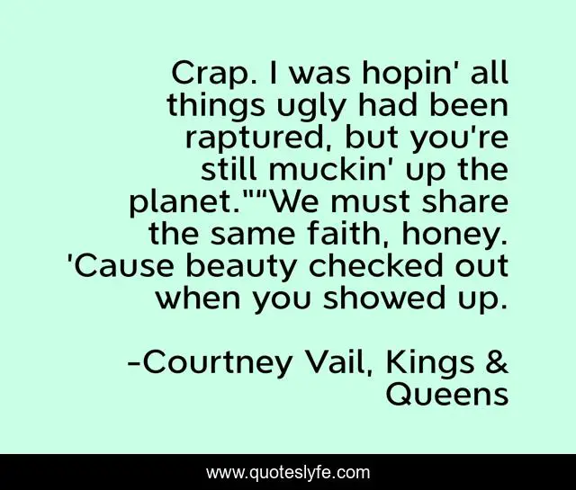 "Courtney Vail, Kings & Queens Quotes." Quoteslyfe.com, 2025. Fri. 05 Dec. 2025. <https://www.quoteslyfe.com/quote/Crap-I-was-hopin-all-things-ugly-188403>.