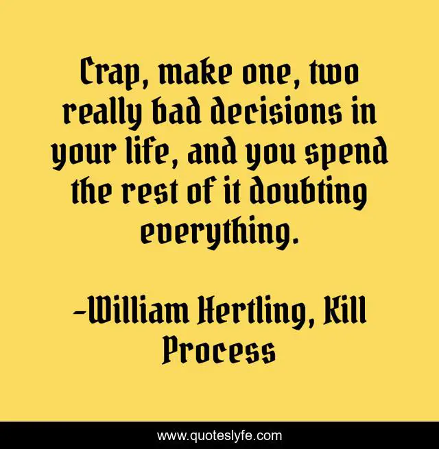 "William Hertling, Kill Process Quotes." Quoteslyfe.com, 2025. Sun. 07 Dec. 2025. <https://www.quoteslyfe.com/quote/Crap-make-one-two-really-bad-decisions-157213>.
