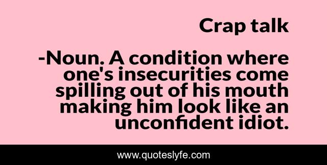 "Noun. A condition where one's insecurities come spilling out of his mouth making him look like an unconfident idiot. Quotes." Quoteslyfe.com, 2025. Sat. 06 Dec. 2025. <https://www.quoteslyfe.com/quote/Crap-talk-144387>.