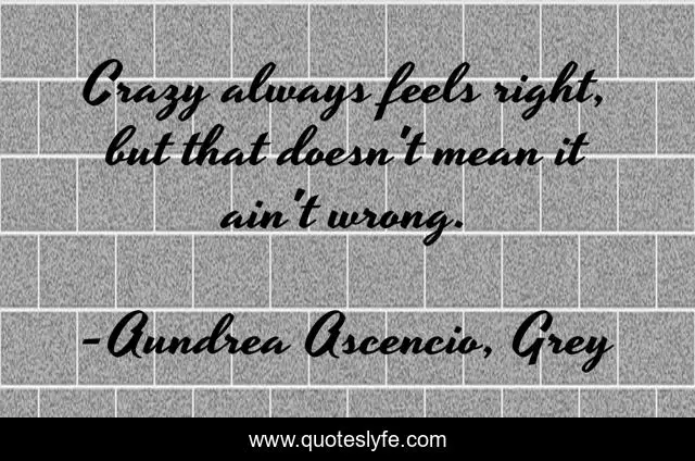 "Aundrea Ascencio, Grey Quotes." Quoteslyfe.com, 2025. Fri. 05 Dec. 2025. <https://www.quoteslyfe.com/quote/Crazy-always-feels-right-but-that-doesn-238213>.