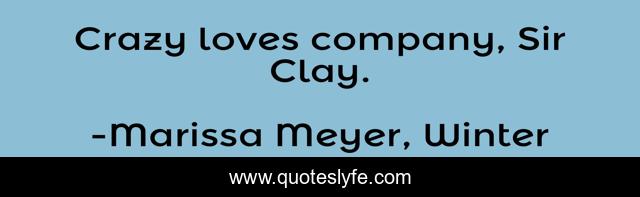 This page presents the quote "Crazy loves company, Sir Clay.". Author of this quote is Marissa Meyer, Winter. This quote is about winter, cinderella, fairy-tale, rapunzel, little-red-riding-hood, snow-white, lunar-chronicles,.